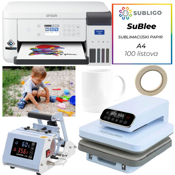 Komplet „Tiskaj na sve“ predstavlja jednostavan i učinkovit korak naprijed u sublimaciji, namijenjen korisnicima koji žele proširiti ponudu personaliziranih proizvoda i dodati mogućnost izrade tekstila, ravnih tvrdih materijala i kreativnih sublimacijskih artikala. Idealan je za foto studije, poklon-galerije, kreativne radionice, print servise i sve poslovne modele kojima personalizirani proizvodi donose dodatnu vrijednost i privlače nove kupce.