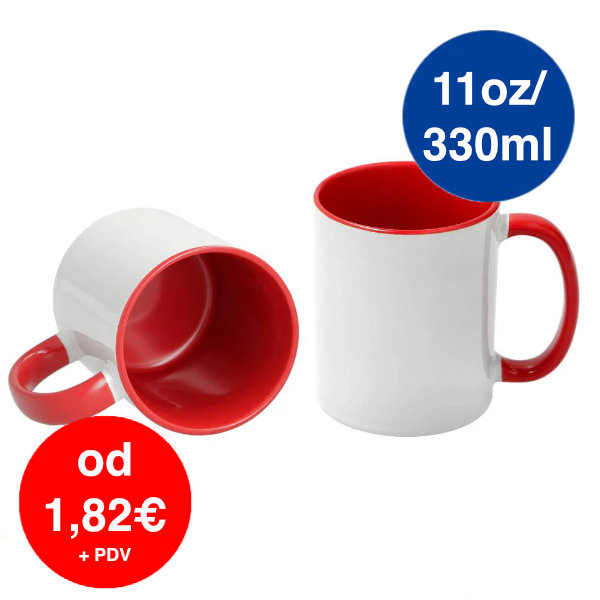 Šalica za sublimaciju 11 oz / 330 ml – unutrašnjost i ručka crvena