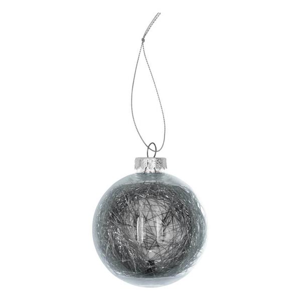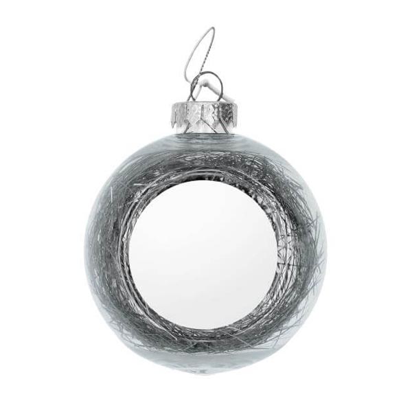 Plastična božićna kuglica Ø80 mm za sublimaciju – srebrena vrpca