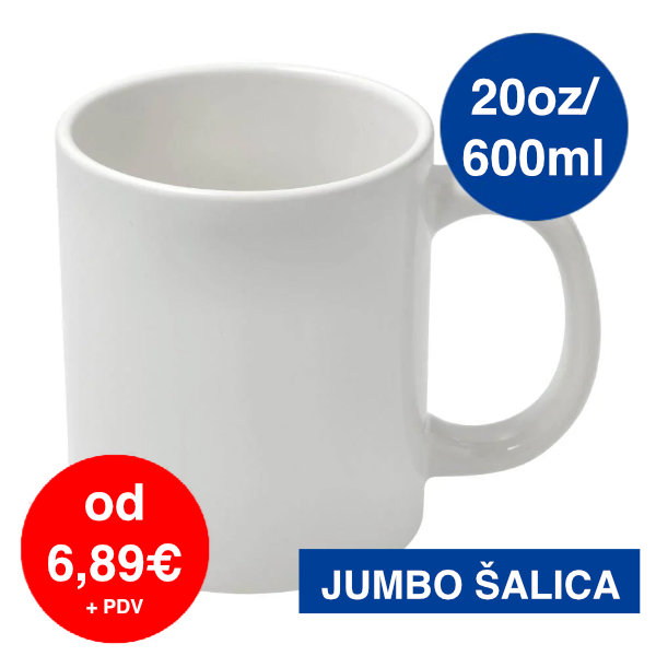 JUMBO šalica za sublimaciju 20 oz / 600 ml bijela