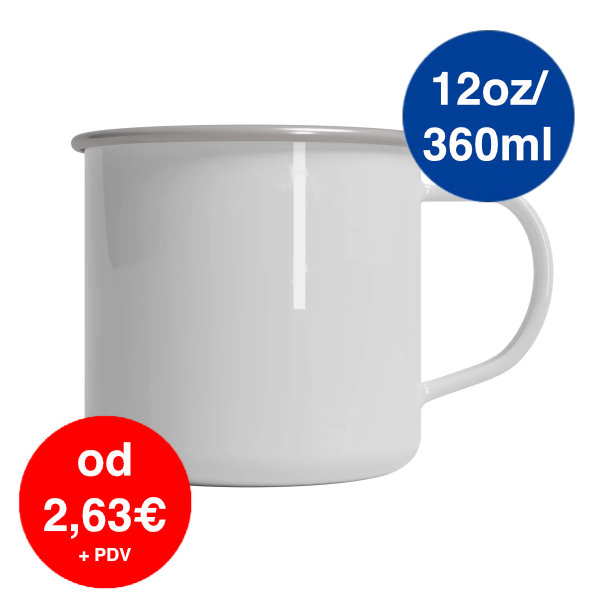 Šalica izrađena od bijelog emajla koja se može printati u punoj boji tehnikom sublimacije. Lagana je i ima ravno dno što joj daje stabilnost. Idealna je za kampiranje ili planinarenje.