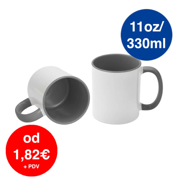 Šalica za sublimaciju 11 oz / 330 ml – unutrašnjost i ručka siva