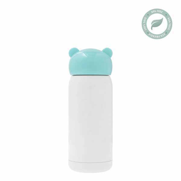 Boca je izrađena od nehrđajućeg čelika i ima nevidljivi polimerni premaz koji ju čini spremnom za sublimaciju. Možete ju personalizirati unikatnim dizajnom za svako dijete. Plavi poklopac s ušima daje boci razigran i zabavan izgled.